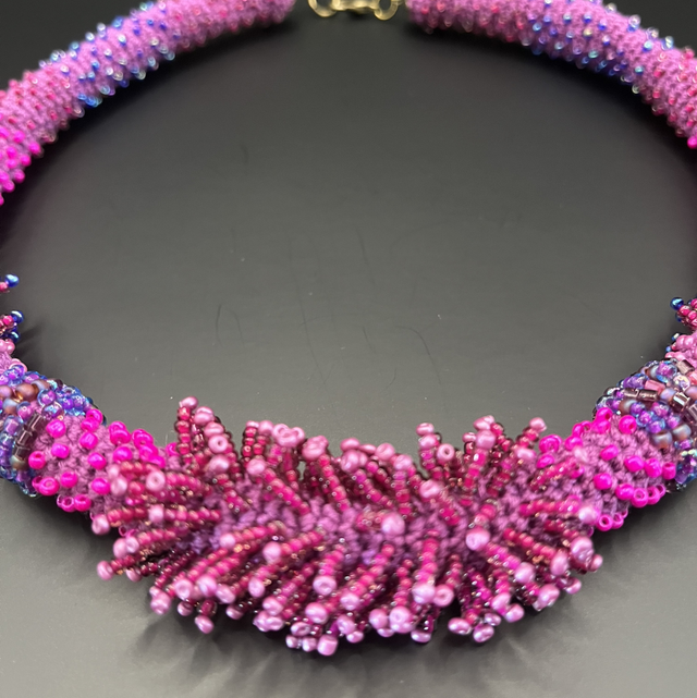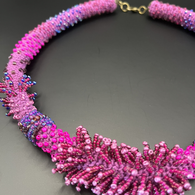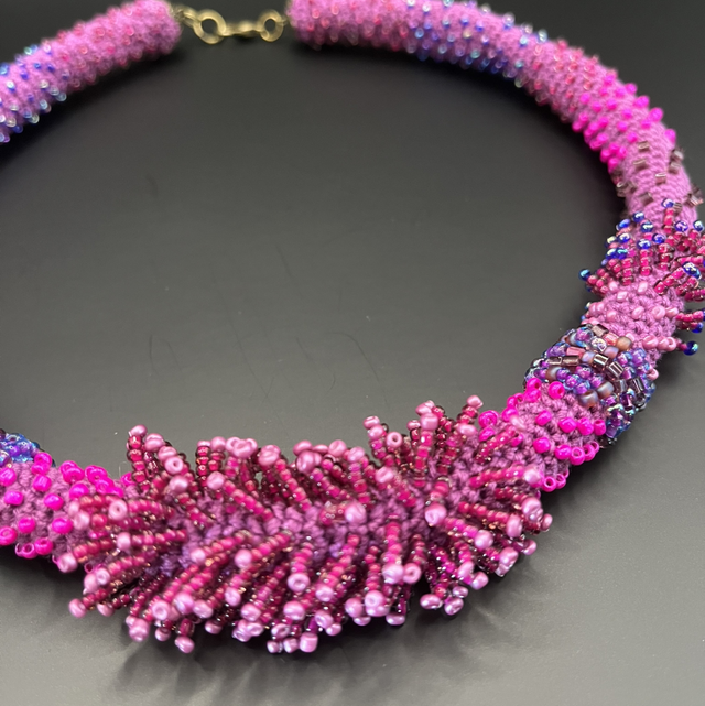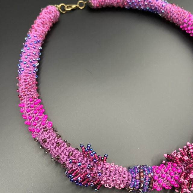 Éclosion Fuchsia - Collier crocheté et brodé de perles